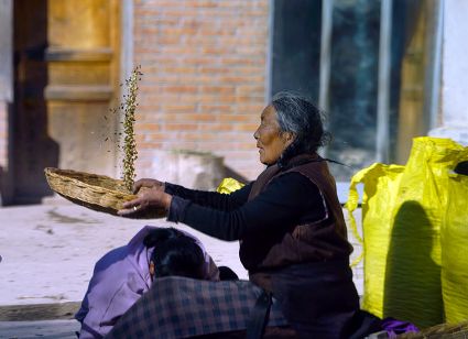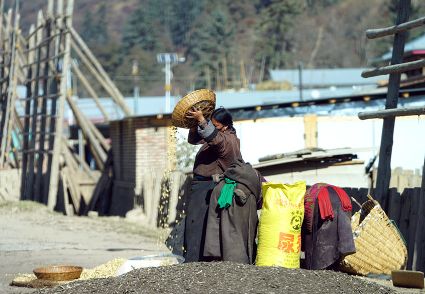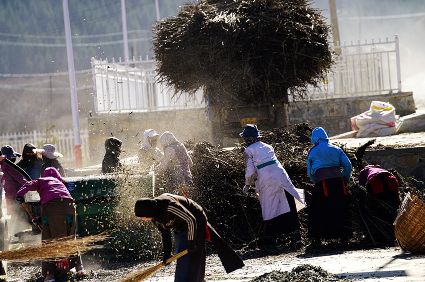 我想,擁有了清新質(zhì)樸的鄉(xiāng)野日子,就可以靜下心來。而事實上還是無法安下心來,一面想著山林的神秘,一面想著城市的熱鬧。寂寞無聲地穿過巷道,那個向陰的小二樓一如既往地昏暗。拉開麻布的窗簾,大多時候我會看見走在巷道里的老老少少、男男女女,他們背著柴禾,滿帶笑容,相互致意。他們的日子似乎充滿了無盡的樂趣,也充滿了幸福和陽光。上午十點的時候,陽光會滑過窗臺,轉(zhuǎn)瞬即逝,但陽光的確向小二樓袒露了它的無能為力。另一張桌子擺放著廚具,廚具上每天都會有新的灰塵堆積,盡管如此,它們依然發(fā)出青稞的馥郁之氣。