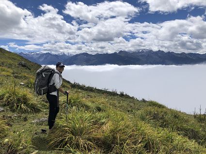 過(guò)去康定人去五色海,一般是凌晨出發(fā),帶一頓打尖(路餐)當(dāng)天來(lái)回。現(xiàn)在去五色海的徒步的常規(guī)線路有三條,:一是從公主橋沿溝進(jìn)去,到達(dá)溝尾后有一小橋,過(guò)橋沿清晰線路到達(dá)泥巴山,穿過(guò)回族墓地靠小溪行進(jìn),沿途有水源保護(hù)地提示牌,找到提示牌后就算找到大路了,沿此路上到磨刀梁子再下到溝底,到達(dá)杜鵑花走廊過(guò)石橋,向上就可到達(dá)。二是州醫(yī)院二醫(yī)院公路對(duì)面徒步起點(diǎn),沿大路上到磨刀梁子再下到溝底,到達(dá)杜鵑花走廊過(guò)石橋,向上就可到達(dá)。三是從新城出發(fā),經(jīng)喇嘛洞分路去到磨刀梁子再下到溝底,到達(dá)杜鵑花走廊過(guò)石橋,向上就可到達(dá)五色海。此線路坡度較緩,馬幫可行。對(duì)路線不清楚的可以去康定貢嘎國(guó)際青年旅舍前臺(tái)獲取徒步軌跡。