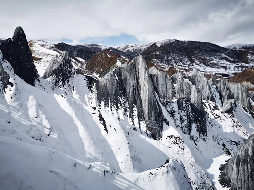 斷裂帶上的巖石,受到地震運動的強烈擠壓,先是被碾磨成粉末狀,又被重新膠結(jié)成一種新巖石,這就是變質(zhì)巖中的“明星”——糜棱巖。當(dāng)它伴隨青藏高原隆升暴露地表后,由于質(zhì)地軟弱、膠結(jié)疏散,經(jīng)過流水沖刷、風(fēng)雪鏟刮、重力崩塌等風(fēng)化作用,石林景觀便映入人類的眼簾。