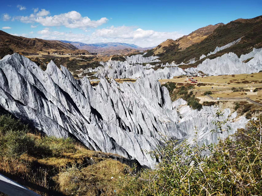 其實,這種巖石不僅出現(xiàn)在道孚縣,沿鮮水河斷裂帶,曾形成過長達(dá)上百公里的糜棱巖帶,但有幸成為石林的,卻唯有墨石公園。
