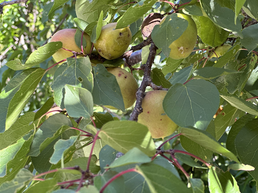 彩色鋪裝的通村路兩邊,成片的苞谷林正在背紅纓,風(fēng)中響著緊密結(jié)實(shí)的聲音。各種果木枝繁葉茂,結(jié)滿了寶石般紅紅綠綠的果子。一排柴垛上方,伸出很大一片橙色的小果子,沒(méi)有葉子,我們像賞花一樣欣喜于它的紅艷。嘉絨姑娘悄默地走在我們身邊,她的手里擺弄著一片草葉,安靜而美好,是感到這一路上的莊稼果木已經(jīng)足夠繁盛。