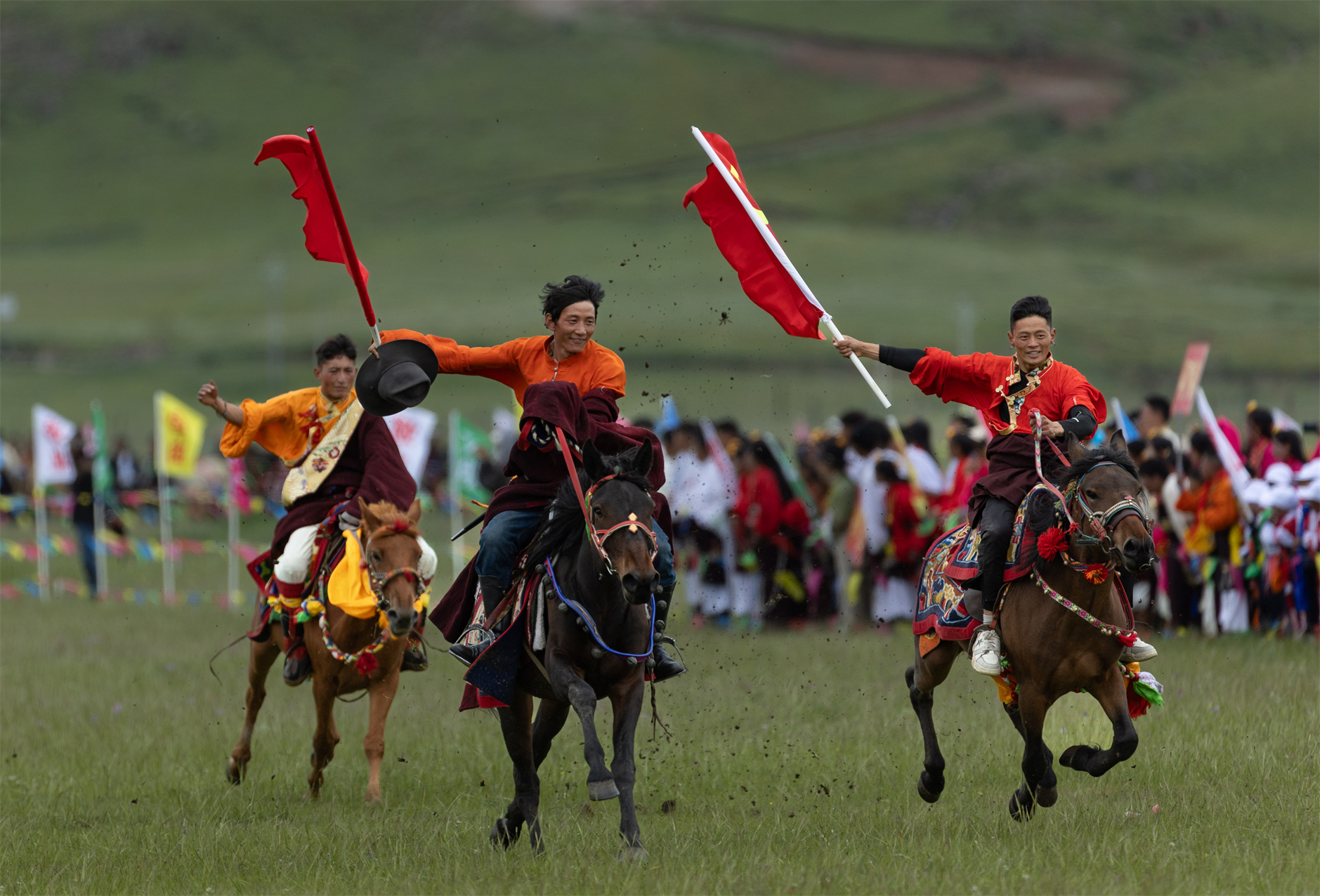 7月27日,四川省甘孜藏族自治州白玉縣第二屆“盛德白玉·草原最?!编l(xiāng)村民俗文化活動在阿察鎮(zhèn)日通草原啟幕。文藝匯演、牦牛選美、擠奶比賽、賽馬等活動在接下來兩天里將輪番上演,吸引當(dāng)?shù)啬撩窈捅姸嘤慰颓皝碛^賞。