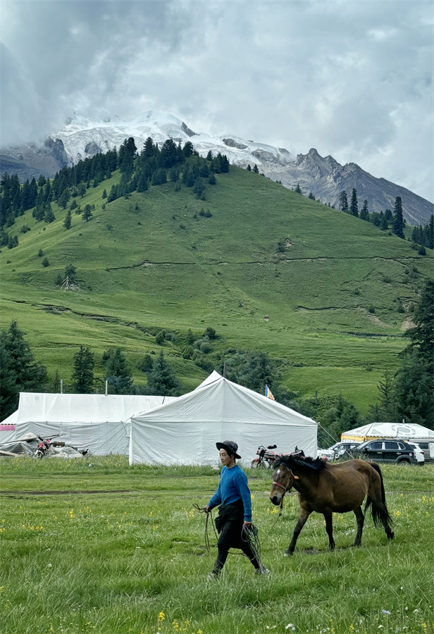 不管然日卡村還是則巴村,村民的勤勞善良也一樣讓人印象深刻。然日卡村的藏族姑娘丁真拉珍剛過18歲,卻經(jīng)常像個(gè)將軍去山上放牧和指揮100多頭牦牛,如果時(shí)間允許,她還去挖蟲草和松茸,但同時(shí)又在村里當(dāng)旅游向?qū)?,騎上摩托、牽上馬匹帶游客四處參觀,每天忙得不亦樂乎;同樣是然日卡村的小伙澤仁剛?cè)⒘宋棠饭媚铮麄儚膫鹘y(tǒng)的放牧中抽身出來,與村里許多年輕人一樣,一心一意打造鄉(xiāng)村民宿,用勤勞的雙手走上了一條嶄新的致富路;而則巴村的帥小伙甲他,今年也在村子里建起了屬于他們一家的“奔然甲他”民宿,奔然是村前一座小山的名字,甲他相信他們的日子一定如山一般堅(jiān)實(shí)越過越好。