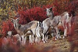 巖羊(學(xué)名:Pseudois nayaur),體型中等,形態(tài)介于野山羊與野綿羊之間。兩性具角,雄羊角粗大似牛角,但僅微向下后上方彎曲。以青草和各種灌叢枝葉為食。冬季啃食枯草。它們還常到固定的地點(diǎn)飲水,但到寒冷季節(jié)也可舔食冰雪。無固定獸徑和棲息場所。它們在懸崖峭壁只要有一腳之棱,便能攀登上去。一跳可達(dá)2、3米,若從高處向下更能縱身一躍10多米而不致摔傷。冬季發(fā)情交配,次年6、7月產(chǎn)仔,每年通常只產(chǎn)1仔。主要天敵是雪豹、豺、狼,以及禿鷲和金雕等大型猛禽。中國國家二級重點(diǎn)保護(hù)野生動物。