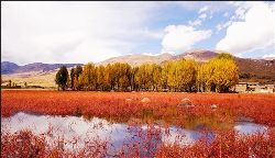 蔚藍(lán)蔚藍(lán)的天空飄著幾朵淡淡的白云,天空是那么近,仿佛你伸手可觸。一出縣城,你可以看到世界上海拔最高、面積最大的人造青楊林,這兒的海拔是三千七百多米,農(nóng)業(yè)學(xué)家認(rèn)為海拔4000米是不能生長農(nóng)作物的,可是這里照樣是郁郁蔥蔥,到處是風(fēng)里閃爍的青楊樹,映著灘寬水淺的小河,炊煙裊裊的藏房,潔白豐滿的佛塔,還有色拉村的晨霧,好一派迷人的美景……