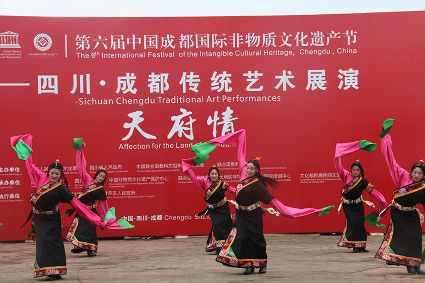 到處都是炫麗的色彩,到處都有神秘的傳承,6月10日,第六屆成都國(guó)際非遺節(jié)在成都拉開(kāi)帷幕。當(dāng)天下午2時(shí),一場(chǎng)我州特有的文化大戲在成都非遺博覽園西城事廣場(chǎng)上演。我州石渠真達(dá)鍋莊隊(duì)在此激情演繹,他們揮舞長(zhǎng)袖,翩翩起舞,讓前來(lái)游覽的觀眾贊不絕口。