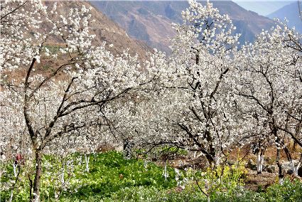 陽春三月,瀘定陽光明媚,到處生機盎然。大渡河畔的杵坭、田壩等地櫻桃花在田間競相綻放,一團團,一簇簇,一朵朵潔白的花兒緊緊簇?fù)碇?,綴滿枝頭。一陣陣微風(fēng)吹來,櫻桃花隨著枝條在風(fēng)中輕盈地?fù)u曳。