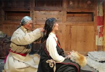 歷時一個多月,擠奶、喝酥油茶、茶馬古道、商人打秤、康巴商人袖內(nèi)交易、客人喝酥油茶場景、弦子、主人房、藏式廚房、婚俗、倉庫、羊毛編織、藏文書法、理塘傳統(tǒng)建筑等蠟像雕塑,將康巴人過去的生活還原得栩栩如生。