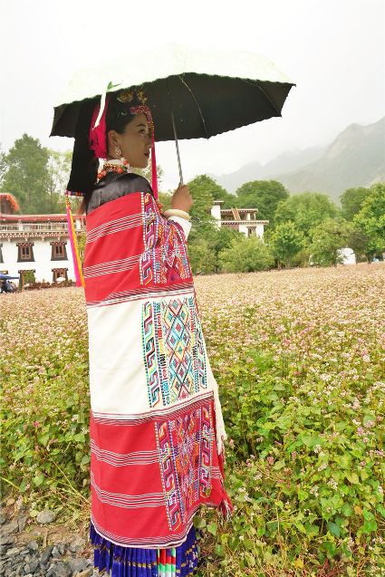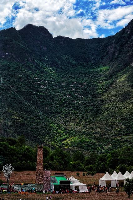比賽開始不久,現(xiàn)場下起了小雨,但絲毫沒有影響熱烈氣氛。臺上的佳麗們,略施粉黛,穿著承載著嘉絨風情文化的民族盛裝,自我介紹,優(yōu)雅展示。臺下,則是鄉(xiāng)民齊聚,熱情高漲。大家紛紛到場,為佳麗們加油助威。據(jù)介紹,丹巴出美女始于漢代的東女國時期。古時每年農(nóng)作物收獲的時節(jié),丹巴各村各寨都要舉行盛大的選美和祭祀活動。