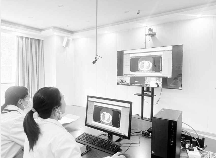 白玉縣人民醫(yī)院醫(yī)生與成都市第七人民醫(yī)院醫(yī)生隔屏對(duì)話,為一腹痛患者會(huì)診。(受訪者供圖)
