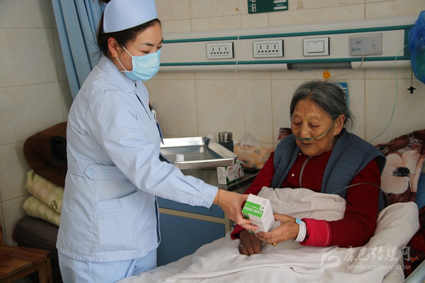 護(hù)理人員在指導(dǎo)患者服藥。