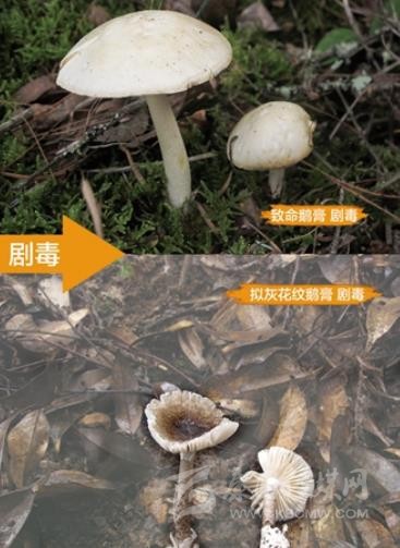 含劇毒的致命鵝膏和擬灰花紋鵝膏。圖片來源:中國疾病預(yù)防控制中心