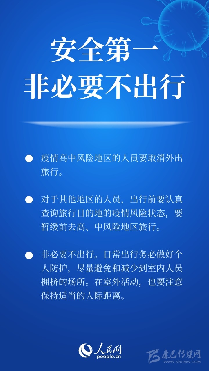 面對(duì)嚴(yán)峻的疫情形勢(shì),個(gè)人應(yīng)該如何守牢防疫紅線,做好防疫第一責(zé)任人,不給病毒傳播以可乘之機(jī)?聽(tīng)聽(tīng)國(guó)家衛(wèi)健委和中國(guó)疾控中心的建議。