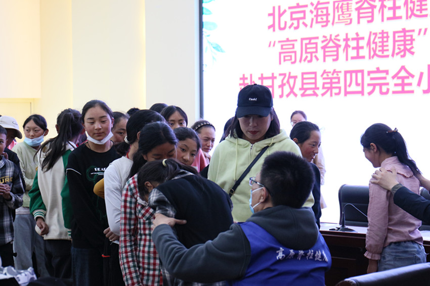日前,北京海鷹脊柱健康公益基金會“高原脊柱健康”醫(yī)療專家團(tuán)隊到甘孜縣小學(xué),為孩子們逐個進(jìn)行脊柱篩查和診斷,其中有31名輕微脊柱側(cè)彎的學(xué)生、5名重度脊椎側(cè)彎患者納入赴京手術(shù)名單。圖為醫(yī)護(hù)人員正在篩查。 甘宣 攝影報道