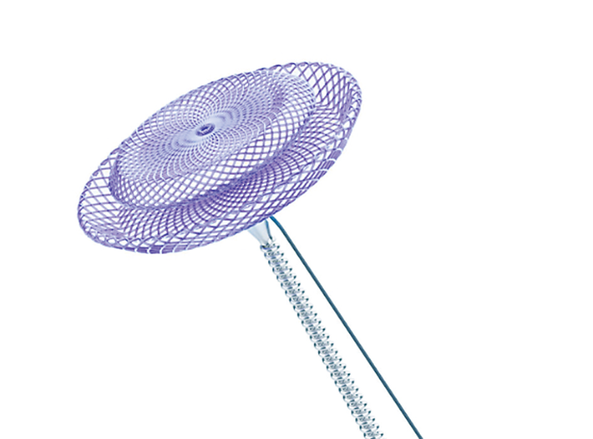 經(jīng)過反反復(fù)復(fù)的嘗試,最終把封堵器做成了雙盤內(nèi)凹結(jié)構(gòu),并通過高溫?zé)岫ㄐ图疤厥狻版i扣”設(shè)計(jì)等,實(shí)現(xiàn)“非形狀記憶的材料達(dá)到形狀記憶的功能”。