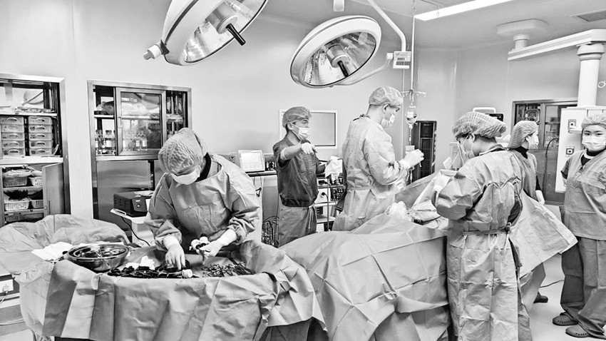 與此同時,來自瀘州市人民醫(yī)院的婦科專家也在進行腹腔鏡下右側附件+囊腫切除術。在腹腔鏡的探查下,主刀醫(yī)生精準地發(fā)現(xiàn)病灶處,向一旁的觀摩醫(yī)生講解手術規(guī)劃和步驟。隨后,婦科醫(yī)生與肝膽外科醫(yī)生進行接力,由瀘州市人民醫(yī)院肝膽外科專家繼續(xù)開展腹腔鏡下膽囊切除術。據(jù)了解,當日還開展了下肢大隱靜脈高位結扎+血管剝脫術+分支血管硬化劑注射治療。