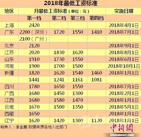 今年以來(lái)提高最低工資標(biāo)準(zhǔn)的地區(qū)至少有上海、廣東、北京、江蘇、山東、河南、新疆、四川、江西、廣西、云南、西藏、遼寧等13個(gè)省份。