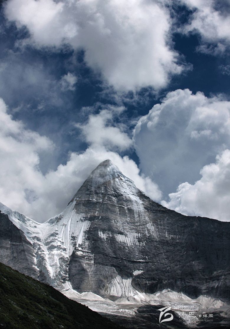 回想起來,我們從隴隴壩到沖古寺,足足走了一個多小時,在高海拔的山區(qū)徒步的確是件痛苦的事,但當偶爾的抬頭,北側面的仙乃日神山向你展現(xiàn)他寬廣的身體的時候,一切的疲勞、痛苦,頓時化作烏有。當巍峨、圣潔的山峰如神靈顯圣般出現(xiàn)時,淚水潤濕了我的雙眼,情不自禁有一種下跪膜拜的沖動。仙乃日是被稱作觀世音菩薩的神山,菩薩多變的法相此刻變得莊嚴而慈和,遙遠而又伸手可觸。仙乃日的光芒灑在亞丁深處林海草原上,灑在漂泊苦旅的心中,遠處的經幡隨風翻動唱著頌歌,流轉的陽光在溪流中變幻,我始知來到了佛佗的世界。