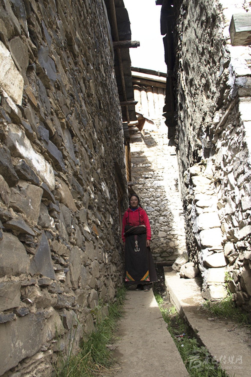 莫斯卡的房子都用石頭砌成,并在外墻噴成灰白的顏色,屋外一條斜斜的樓梯通往屋內(nèi),樓梯或屋后整齊的堆滿柴禾,屋頂都用青石板蓋成。整個村莊緊緊圍著金龍寺向外延擴展,形成一個約20-30畝的長方形村落,并砌了圍城將村莊圍起來。圍墻留有一個前門和兩個中門,供村民們進出。村民們與自然和諧相處,過著“與世隔絕”的生活。
