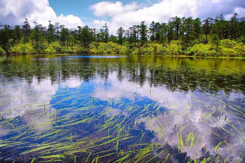 繼續(xù)前行,下一站既是木格措。木格措漢名:野人海,水源來自于身后女媧雪山的積雪融水,水質(zhì)清冽,能見度極高,湖四周群山環(huán)抱,紅海、黑海、白海等幾十個小海子圍繞在周圍,如眾星拱月般。木格措風(fēng)光秀美,“臥虎觀月”、“雙霧墜?!钡染坝^最為獨特。