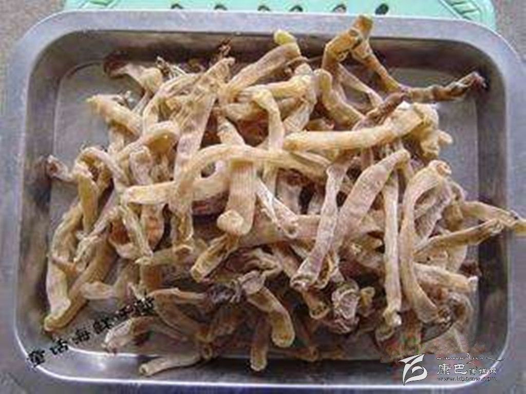 ●海參。體形完整端正、夠干、淡口、結(jié)實(shí)而有光澤,大小均勻、肚無沙的為上品;體形較完整、結(jié)實(shí)、色澤較暗者歡之。
