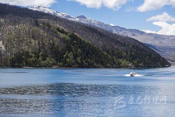 坐船游湖是感受木格措風(fēng)光最好的方式。坐在船艙看在那煙波浩渺波光粼粼的湖面,使人感到一種置身世外桃源般的感受,陶醉在這沒有粉飾的質(zhì)樸圣潔的美中,忍不住想放聲高歌,又怕破壞了這和諧的氣氛。