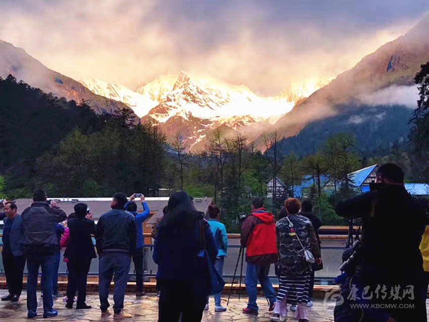 海螺溝景區(qū)日照金山景觀吸引眾多攝影愛好者。 (江衛(wèi)平 攝)