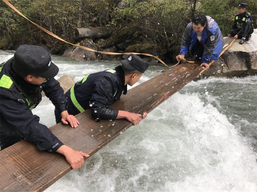 丹巴縣警察救助被困游客。