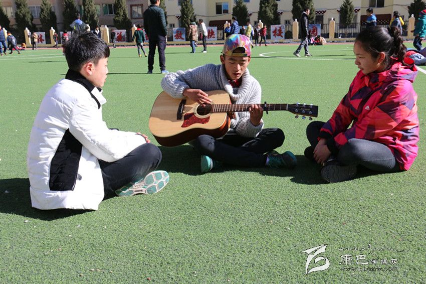 “白云下一座溜溜的城/聽著溜溜的歌聲/李家那溜溜的大姐喲/溜溜愛上藏家大哥喲/尋夢在溜溜的跑馬山/我推著金桶溜溜轉(zhuǎn)/折多河溜溜穿城過喲/頌經(jīng)聲溜溜的傳承喲/悠揚琴聲在溜溜小城/我溜溜等待著愛人/跑馬山龍打溜溜撒喲/心就在溜溜城中活……”最近一首名叫《溜溜》的歌曲刷爆了記者的朋友圈,不到一天的時間點擊率達到12000多,干凈的嗓音碰上吉他、貝斯等流行元素,給聽眾帶了一種不同的音樂享受?!读锪铩返脑~曲作者周麒(當(dāng)然他也是原唱之一)和主唱昂汪央金拉姆、周楠都是來自康定中學(xué)的學(xué)生,在冬日的午后,記者在康定中學(xué)的籃球場見到了這三位一臉天真的原創(chuàng)者。初見記者,他們還有一些靦腆、緊張,但是一談到音樂,他們立刻有了說不完的話。