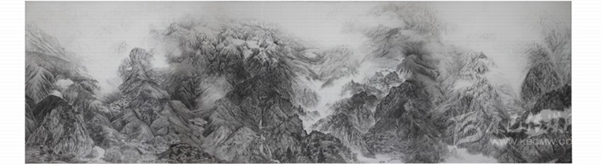 在我剛開(kāi)始創(chuàng)作“茶馬古道”之時(shí),有人問(wèn)我:“給誰(shuí)畫(huà)的?拿來(lái)賣的嗎?”我連連搖頭,問(wèn)者滿臉疑惑。也有同行對(duì)我創(chuàng)作大幅素描山水畫(huà)有些不解。其實(shí)我沒(méi)那么奇葩,只是每個(gè)人想要的不同而已。我花費(fèi)大量的財(cái)力和精力去采風(fēng)、寫(xiě)生并潛心創(chuàng)作《茶馬古道》,是因?yàn)槲议L(zhǎng)在“茶馬古道”,是“茶馬古道”養(yǎng)育了我,是我的“責(zé)任感”使然;為什么還要畫(huà)一幅難以參加常規(guī)展覽尺寸(966×266cm)的作品呢?是因?yàn)?/span>“茶馬古道”東線艱險(xiǎn)而又壯美的河山及所包涵的故事,用較小尺幅難以表達(dá)盡興。再則在藏族唐卡布上用鉛筆勾勒和皴擦出中國(guó)山水畫(huà)的意境,是一種新的嘗試,也是中西文化的再一次交匯。
