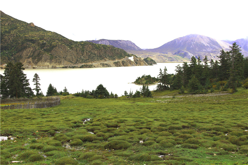 我一直走到村莊的盡頭,那里又是然烏湖的水域,湖邊有很多鵝卵石。我問(wèn)了好些人才弄清“然烏”一詞的漢語(yǔ)的大意: “許多尸體堆積在一起”。據(jù)說(shuō)這里曾是藏東南有名的水葬場(chǎng),這也是它有名的另一個(gè)原因。歸去來(lái)兮,生死輪回,最后在這里仰望雪山草地,干干凈凈,一身清白,等候踏上去天堂的路。水葬是藏族古老習(xí)俗中三種殯葬方式中的一種,佛家講布施,天葬和水葬都含有布施的意義。藏民不吃魚(yú)也多是源于此。