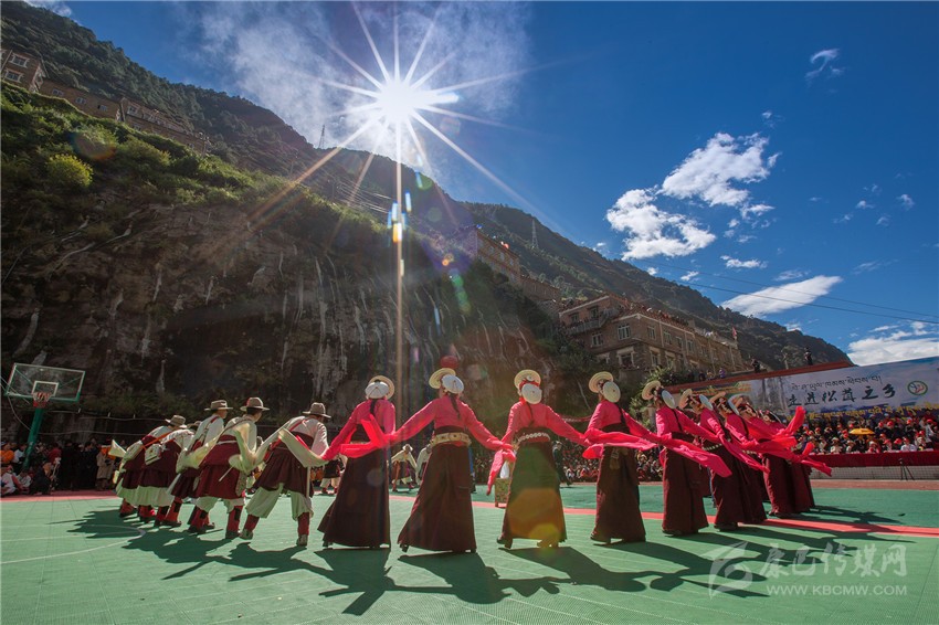 悠悠的牧歌、遼闊的草原、古老的盛裝,寄托著紅龍鄉(xiāng)兒女對盛會的吉祥祈愿和聲聲祝福;瓦多鄉(xiāng)鍋莊隊那別致的發(fā)飾“日月銀盤”,揮舞的水袖、律動的舞步,訴說著古老部落在黨的帶領下攻堅克難奔向小康的生動故事……