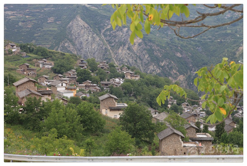 至此,似乎明了:在大渡河的東岸,在南北向布列的橫斷山脈(群)的夾金山系里,照常分布著眾多山的凹槽(山溝)——或深或淺,或?qū)捇蛘?,方向不定;而麥崩鄉(xiāng)所轄的村莊,幾乎都位于山溝兩側(cè)比較平緩的山坡臺(tái)地上。比如,昌昌村與對(duì)面山上的景點(diǎn)之間,就隔著一條大溝;昌昌村與下火地村之間,也隔著一條大溝;下火地村與景點(diǎn)所在的那座山,也隔著一條大溝了。