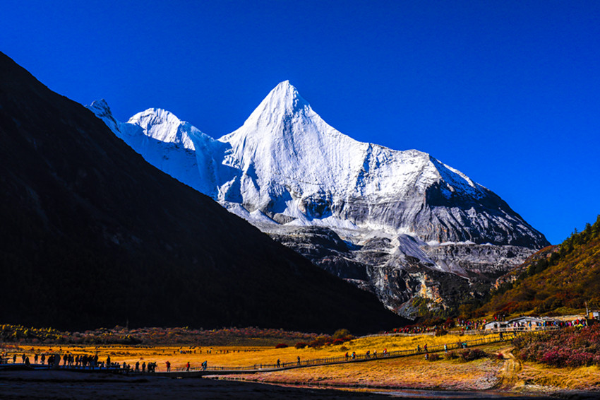 木雅民族的鍋莊跳起來(lái)了,穩(wěn)沉而有力,多情而悠長(zhǎng),在雪峰環(huán)繞的庇護(hù)下,“木雅辛康”(意為天堂般的木雅地方)歡樂(lè)的歌聲盈滿(mǎn)了整個(gè)山谷。