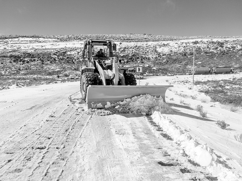 回程。盡管已經(jīng)想到過(guò)這一趟的不易,但在車子駛到山崖下時(shí),我們還是著實(shí)被驚住了。我們的車子越過(guò)小溪進(jìn)入山崖,便見前方不遠(yuǎn)的懸崖上不斷有石塊在掉落,砸在路面、車頂和擋風(fēng)玻璃上,嘚嘚、咚咚、當(dāng)當(dāng)?shù)仨憘€(gè)不停??绰访?,有一堆被碾成一座小山峰似的碎石,想來(lái)就是由若干次這樣的飛石堆積而成的;看高處,一塊張牙舞爪的巨大巖石,正無(wú)聲地冒著濃濃的煙塵,那些落石就是從那里掉落下來(lái)的。這時(shí)候起了風(fēng),扭動(dòng)的煙塵里,那塊巨大的巖石似乎也隨時(shí)可能落下來(lái)。我遲疑了一下,下定決心踩下了油門,我們的車子于是轟隆著,脫韁的野馬似的向前沖了出去,一直沖過(guò)整個(gè)山崖,在胸腔里轟咚咚的狂跳中在山崖下的那個(gè)拐彎停住。