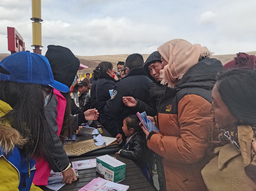 縣司法局剛擺好咨詢臺,就吸引了眾多群眾的目光。工作人員一邊發(fā)放宣傳資料,一邊向大家宣傳法律知識、提供法律咨詢,耐心細致地解答群眾在生產生活中遇到的法律問題,引導其拿起法律武器維護自身的合法權益。宣講員白瑪啟珍用通俗易懂的本地語言為群眾們宣講了黨的二十大、省委十二屆二次全會、州委十二屆四次全會及州“兩會”精神,讓群眾接受了一次思想的洗禮。