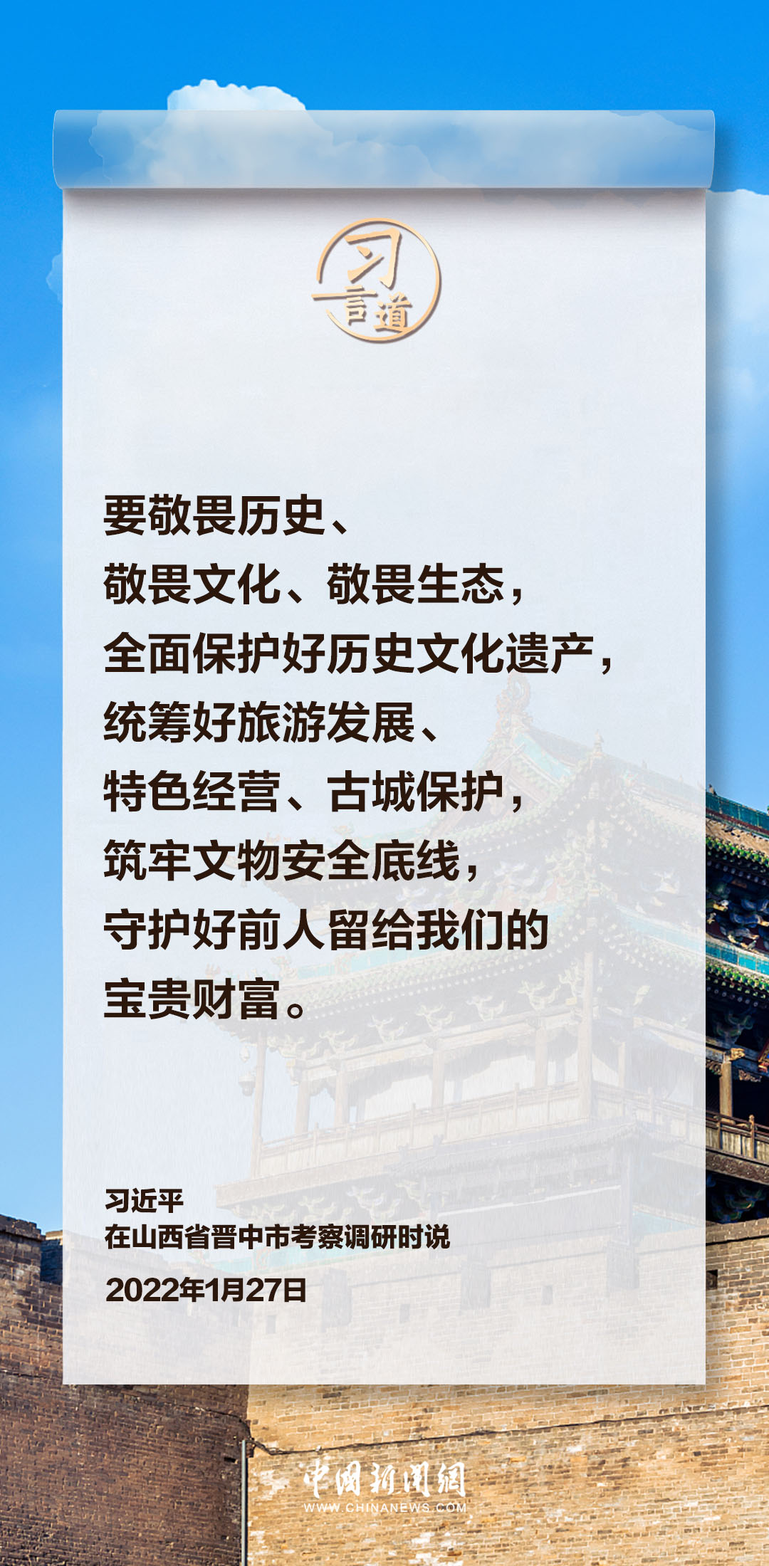 歷史文化遺產(chǎn)是不可再生、不可替代的寶貴資源。一直以來,習近平總書記高度重視文物保護利用和文化遺產(chǎn)保護傳承,強調(diào)守護好前人留給我們的寶貴財富。