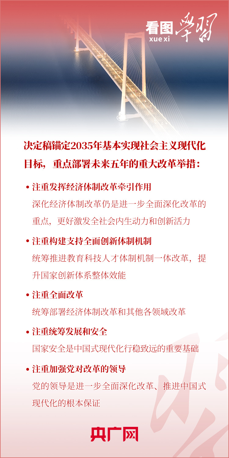 從征求和確定全會議題到起草文件、深入調(diào)查研究、廣泛征求意見、開展專題論證、反復討論修改,習近平總書記指出,決定稿錨定2035年基本實現(xiàn)社會主義現(xiàn)代化目標,重點部署未來五年的重大改革舉措。“五個注重”成為《決定》內(nèi)容擺布鮮明特點。一起來學習!