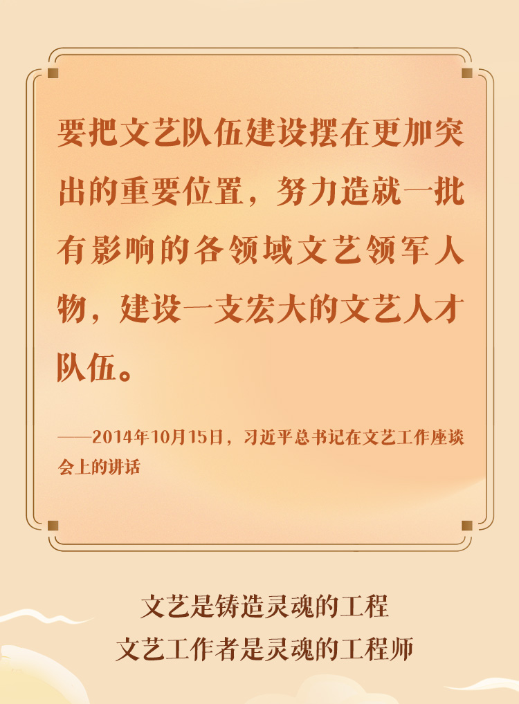 文藝事業(yè)是黨和人民的重要事業(yè),文藝戰(zhàn)線是黨和人民的重要戰(zhàn)線。2014年10月15日,習(xí)近平總書(shū)記主持召開(kāi)文藝工作座談會(huì)并發(fā)表重要講話,為推動(dòng)新時(shí)代文藝繁榮發(fā)展指明了前進(jìn)方向。