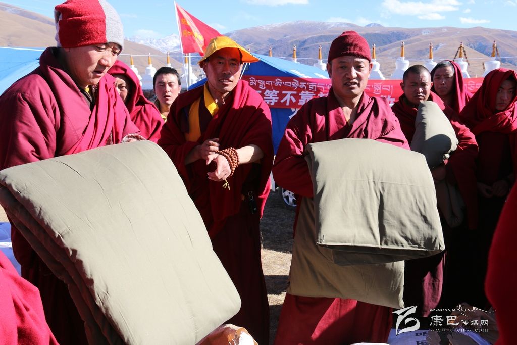 為幫助地震災區(qū)廣大受災僧眾安全過冬,解放軍總裝備部緊急調(diào)運了一批軍用棉被和帳篷,以實際行動給災區(qū)群眾送上一份溫暖。29日下午,部分救援物資運抵道孚縣惠遠寺,道孚縣統(tǒng)戰(zhàn)部受總裝備部的委托,為該寺受災僧侶發(fā)放了533床棉被和13頂帳篷。據(jù)了解,此次捐贈棉被均是部隊購置高質(zhì)量、無雜質(zhì)的優(yōu)質(zhì)軍用棉被,捐贈物將陸續(xù)分發(fā)到康定、道孚兩縣的受災寺廟,重點解決受災僧侶缺少御寒棉被的問題。(記者 張濤 攝影報道)