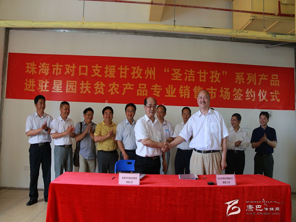 珠海市為了更好幫助甘孜州推銷特色農(nóng)副產(chǎn)品,還專門在位于繁華市區(qū)的星園市場開辟了珠海市對口幫扶地區(qū)特優(yōu)農(nóng)副產(chǎn)品專業(yè)銷售市場,并設(shè)立了近400平方米的“圣潔甘孜”特色產(chǎn)品專銷區(qū)。在參觀了甘孜州產(chǎn)品專區(qū)后,我州考察團領(lǐng)導(dǎo)與珠海市相關(guān)領(lǐng)導(dǎo)共同見證了珠海市對口支援甘孜州“圣潔甘孜”系列產(chǎn)品進駐星園扶貧農(nóng)產(chǎn)品專業(yè)銷售市場簽約儀式,我州知名民營企業(yè)華康進出口(集團)公司正式成為進駐星園扶貧農(nóng)產(chǎn)品專業(yè)銷售市場的第一家州內(nèi)企業(yè)。