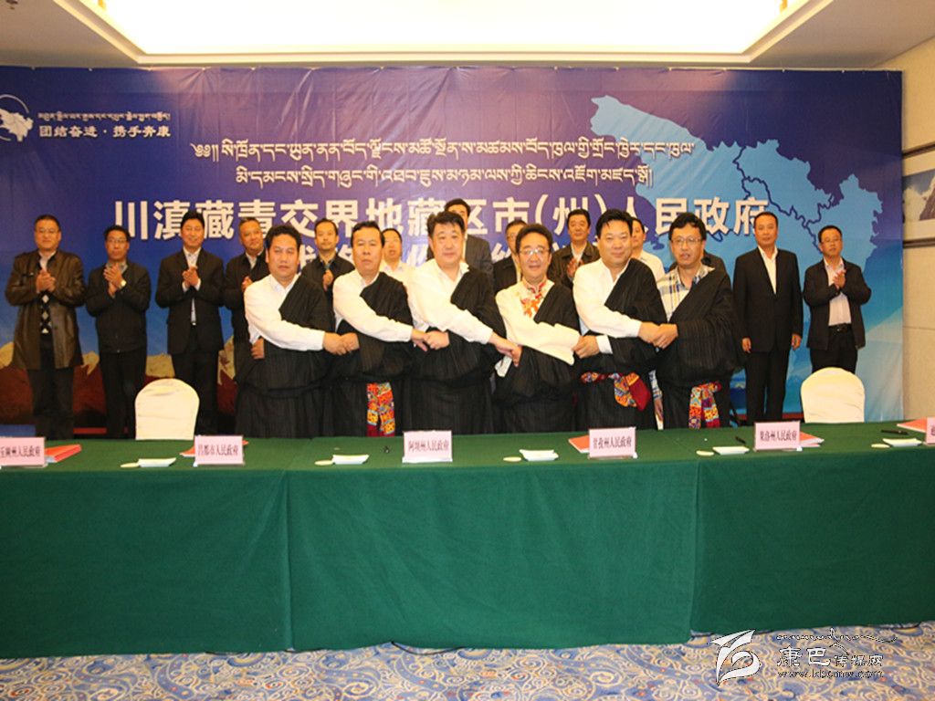 隨著川滇藏青交界地藏區(qū)市(州)長聯(lián)席會(huì)議制度的建立,交界地藏區(qū)的合作由過去“點(diǎn)對點(diǎn)”的雙邊合作上升為“抱成團(tuán)”的多邊合作。圖為簽約儀式現(xiàn)場。