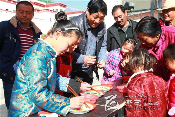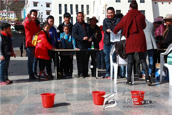 據了解,從大年初三開始,在香巴拉廣場上,除了鍋莊表演外,最吸引人的就是新春游園活動。大年初五早上,在歡快的音樂聲中,群眾成群結隊的趕往香巴拉休閑廣場參加新春游園活動。這次的游園活動除了夾珠子、投飛鏢等項目外,還有筷子入瓶、彈球入杯等內容。活動現場,擁色帶著侄女甜甜早早就開始排隊,她們已經玩了好幾個游戲,掙了好幾張兌獎卷。她告訴筆者,游園活動的獎品雖然不多,但新年能拿到禮物,心里還是樂滋滋的,更為重要的是能和大家一起熱熱鬧鬧過個年。