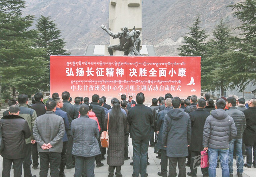 本網(wǎng)訊(記者 楊杰 肖宵 袁飛 文/圖)13日,按照州委統(tǒng)一部署,“弘揚(yáng)長征精神、決勝全面小康”中共甘孜州委中心學(xué)習(xí)組主題活動(dòng)在瀘定紅軍長征紀(jì)念館啟動(dòng)。州委中心學(xué)習(xí)組54名領(lǐng)導(dǎo)干部在重溫入黨誓詞后,踏上赴成都、眉山、雅安、阿壩四市州學(xué)習(xí)考察之路。本次主題活動(dòng)在考察學(xué)習(xí)后還將啟動(dòng)“思想大解放、能力大提升、工作大見效”討論活動(dòng)和“能力素質(zhì)提升工程”,旨在弘揚(yáng)長征精神,決勝全面小康,深化“兩學(xué)一做”學(xué)習(xí)教育,動(dòng)員全州黨員干部“做合格黨員、當(dāng)干事先鋒”。州委書記劉成鳴出席啟動(dòng)儀式并講話,州委副書記、州長肖友才主持儀式。州人大常委會(huì)主任李康、州政協(xié)主席向秋出席啟動(dòng)儀式。