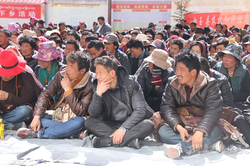 宣講中,宣講員們一會(huì)兒用藏語(yǔ)一會(huì)兒用漢語(yǔ),一會(huì)兒講故事一會(huì)兒舉例子,一會(huì)兒逗趣說笑一會(huì)兒拍案而起,將省、州、縣的方針政策和國(guó)家法律、法規(guī)與當(dāng)?shù)厝罕姷膶?shí)際生活聯(lián)系起來,講得生動(dòng)形象;“現(xiàn)在政策這么好,自己不努力,以后人家都脫貧了你就只有看到。”“勤洗手,勤洗澡,健康生活少不了。”“一個(gè)人長(zhǎng)得再漂亮,住的房子不干凈,穿的衣服不干凈,還有一身壞習(xí)慣,也沒得哪個(gè)喜歡她嘛?!薄瓬\顯通俗又包含道理的句子更是層出不窮?,F(xiàn)場(chǎng)時(shí)而笑聲朗朗、掌聲雷動(dòng),時(shí)而氣氛肅穆、鴉雀無(wú)聲。臺(tái)上,講的是激情四射、手舞足蹈;臺(tái)下,聽的是忘乎所以、目瞪口呆。長(zhǎng)達(dá)3個(gè)小時(shí)的宣講,現(xiàn)場(chǎng)秩序井然。