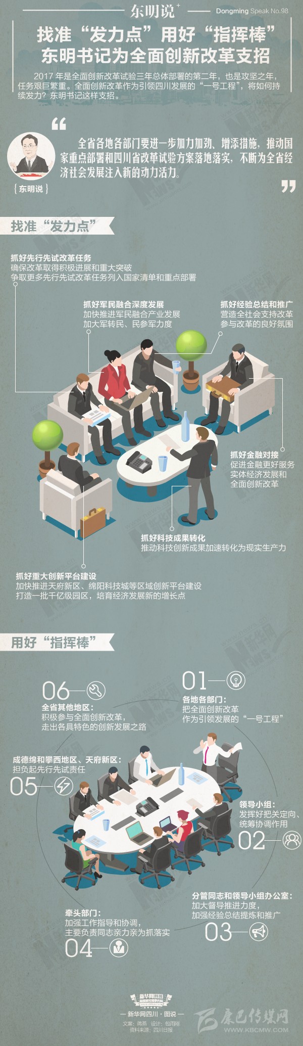 2017年是全面創(chuàng)新改革試驗(yàn)三年總體部署的第二年,也是攻堅(jiān)之年,任務(wù)艱巨繁重。全面創(chuàng)新改革作為引領(lǐng)四川發(fā)展的“一號工程”,將如何持續(xù)發(fā)力?王東明書記這樣支招。