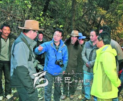 10日早上8點(diǎn)30分,益西達(dá)瓦又率隊(duì)騎馬從卡斯村進(jìn)入卡斯谷。一進(jìn)谷口,大家就被谷口小巧別致的巖溶鈣化彩池、千年古樹沖天柏所震撼。據(jù)說谷口沿線還有古冰川的遺跡,是雪峰、冰川、海子、瀑布、溫泉的共融體,國(guó)家二類保護(hù)植物干香柏,藥用植物蟲草、貝母、黃芪、大黃等也非常豐富。面對(duì)谷內(nèi)五彩繽紛的山色、野性激蕩的溪流、挺拔粗壯的古樹、枝椏橫溢的叢林、結(jié)實(shí)樸拙的木橋、壁立千仞的懸崖,考察隊(duì)員不禁驚呼:“這不就是阿凡達(dá)的故鄉(xiāng)嗎?”益西達(dá)瓦時(shí)而騎馬,時(shí)而步行,一邊察看景致,一邊興高采烈的與同行考察隊(duì)員和縣鄉(xiāng)村干部交談。景區(qū)怎樣規(guī)劃?怎樣建設(shè)?怎樣宣傳?景區(qū)取什么名字?為景區(qū)賦予什么樣的文化靈魂?哪里修棧道?哪里架索道?哪里修觀光電梯?都一一指導(dǎo),清晰地勾畫了卡斯谷開發(fā)藍(lán)圖。