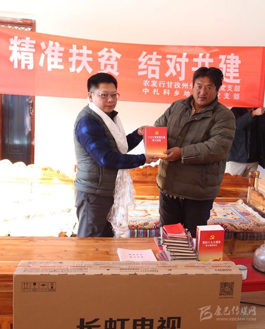 在中扎科鄉(xiāng)地龍村村級(jí)活動(dòng)室,農(nóng)發(fā)行甘孜州分行工作組結(jié)合村情和幫扶實(shí)際,為當(dāng)?shù)鼗鶎痈刹亢忘h員代表宣講黨的十九大精神,共同探討產(chǎn)業(yè)扶貧新路子,并向地龍村黨員活動(dòng)室捐贈(zèng)了 液晶電視、黨建讀物和十九大學(xué)習(xí)專用筆記等物品。希望結(jié)對(duì)村支部能切實(shí)發(fā)揮基層黨組織在農(nóng)牧民群眾中的引領(lǐng)作用,基層黨員能加強(qiáng)責(zé)任意識(shí)和使命擔(dān)當(dāng),積極深入農(nóng)牧民群眾中發(fā)揮自身優(yōu)勢(shì)和黨員先鋒模范作用,以實(shí)際行動(dòng)為群眾做出榜樣,團(tuán)結(jié)帶領(lǐng)全村群眾脫貧致富。