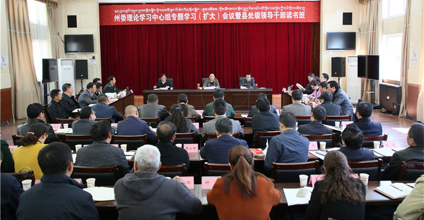 本網(wǎng)訊(記者 楊杰 文/圖)為進(jìn)一步學(xué)習(xí)好 、宣傳好、貫徹好黨的十九大精神和習(xí)近平總書記來(lái)川視察重要講話精神,把全州各級(jí)黨員領(lǐng)導(dǎo)干部的思想和行動(dòng)統(tǒng)一到講話精神上來(lái),把力量和智慧凝聚到習(xí)近平總書記提出的目標(biāo)要求上來(lái),4月4日,州委理論學(xué)習(xí)中心組舉行專題學(xué)習(xí)(擴(kuò)大)會(huì)暨縣級(jí)主要領(lǐng)導(dǎo)干部讀書班。州委書記劉成鳴主持學(xué)習(xí)會(huì)并講話。州人大常委會(huì)主任李康參加學(xué)習(xí)。