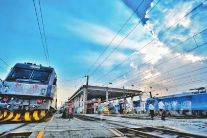 8月6日,中國鐵路成都局集團(tuán)有限公司成都機(jī)務(wù)段,南向班列(成都)從這里開往城廂站,駛往欽州港。